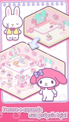 Em **Hello Kitty My Dream Store**, a sua criatividade encontra um lar. Decore e personalize suas lojas com mais de 500 elementos distintos, infundindo cada espaço com os charmosos temas dos seus personagens Sanrio favoritos. Crie um ambiente único com combinações de móveis, acessórios e trajes, transformando cada estabelecimento num reflexo da sua imaginação. Além disso, embarque numa jornada de coleção e desenvolvimento, reunindo mais de 30 adoráveis personagens da Sanrio. Evolua a sua equipe de gerentes e colaboradores para o auge, complete coleções exclusivas e desbloqueie recompensas valiosas que impulsionarão ainda mais o seu progresso neste mundo encantador.