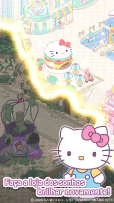 Hello Kitty e Kuromi encaram uma Área Comercial deserta e em ruínas. Mergulhe nesta aventura emocionante para restaurar a magia e o encanto deste antigo paraíso. Descubra como devolvê-lo ao seu esplendor original, tornando-o novamente um lugar dos sonhos para todos.