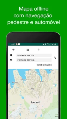 Para personalizar sua aventura, você tem a liberdade de salvar e organizar seus locais favoritos, construindo um roteiro que se alinha perfeitamente aos seus interesses. E para uma experiência de navegação sem igual, a versão premium oferece navegação GPS completa para carros e pedestres. Com esta funcionalidade avançada, você pode se aventurar pelas estradas e trilhas únicas da Islândia com total confiança, sabendo que um guia preciso o acompanhará em cada etapa do caminho, garantindo uma exploração verdadeiramente despreocupada.