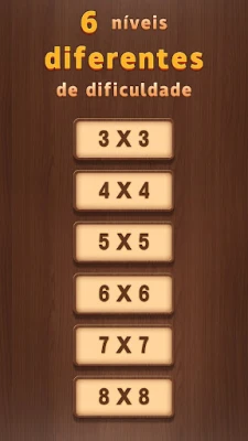 Numpuz: Number Riddle oferece uma vasta gama de desafios com seis tamanhos diferentes de grelha, adaptados a cada nível de proficiência. Começando pelo formato 3x3, perfeito para iniciantes e crianças, o jogo escala em complexidade até ao modo 8x8, meticulosamente desenhado para os jogadores mais experientes e mestres da lógica. Há um desafio esperando por todos: o clássico 4x4, o intrigante 5x5 para pensadores, o complexo 6x6 para veteranos e o difícil 7x7 para quem busca um teste rigoroso. Numpuz: Number Riddle é mais do que um jogo; é uma academia para o seu cérebro, onde a diversão encontra a estimulação mental. Prepare-se para exercitar a sua capacidade intelectual e desfrutar do encanto único deste quebra-cabeça lendário.